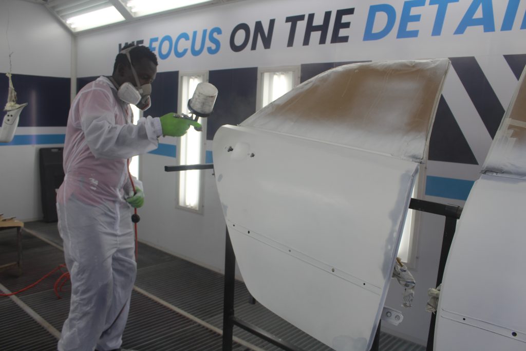 With that done, we primed the surfaces. The primer acts as a crucial bonding agent, providing a smooth surface for the layers of paint to adhere to. Using a high-quality automotive primer, we applied it meticulously ensuring even coverage.